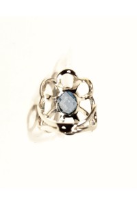 Une bague originale avec sa monture en argent en forme de fleur et une superbe topaze bleue taillée en oval à facettes.