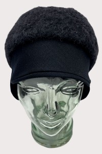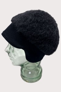 Chic et confortable, ce bonnet en laine duveteuse bordé d'une visière et de protège oreilles en maille noire satinée vous tiendra chaud sans rien sacrifier au style !