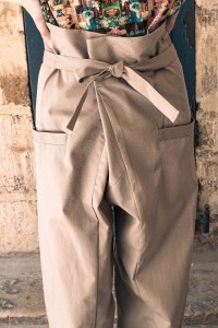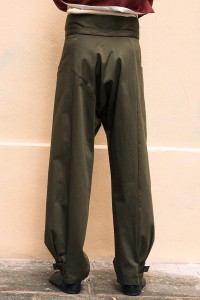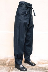 Ce pantalon unisexe, large et élégant, se croise à la taille et se ferme à l'aide de deux boutons et d'un nœud, offrant à la fois style et praticité. Avec ses deux poches et sa coupe fluide, il permet une grande liberté de mouvement et un confort optimal.