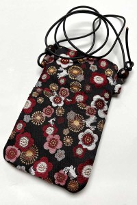 Pochette smartphone en brocart de soie coupé dans une ceinture Obi* vintage, avec une petite poche extérieure.