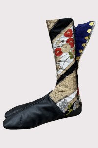 Bottes japonaises Ikitabi Obi, avec un gros orteil séparé et un empiècement en brocart de soie d'Obi (ceinture de kimono). Chaque paire présente des motifs uniques.