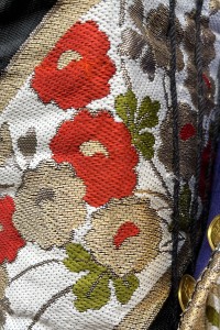 Le haut est confectionné en tissu OBI (ceinture de kimono) 100 % soie, tandis que le bas est en véritable cuir.