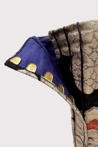Le haut est confectionné en tissu OBI (ceinture de kimono) 100 % soie, tandis que le bas est en véritable cuir.